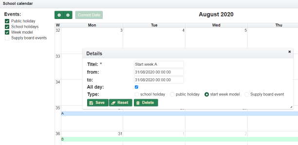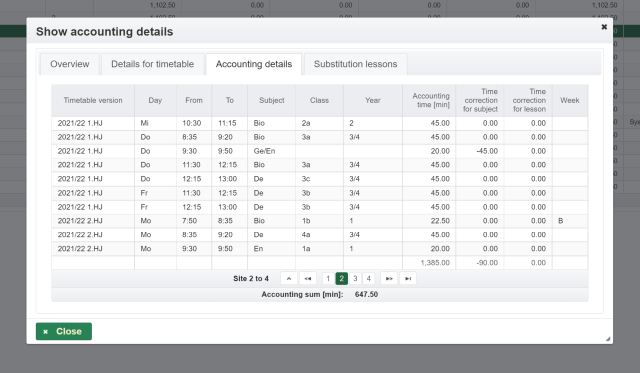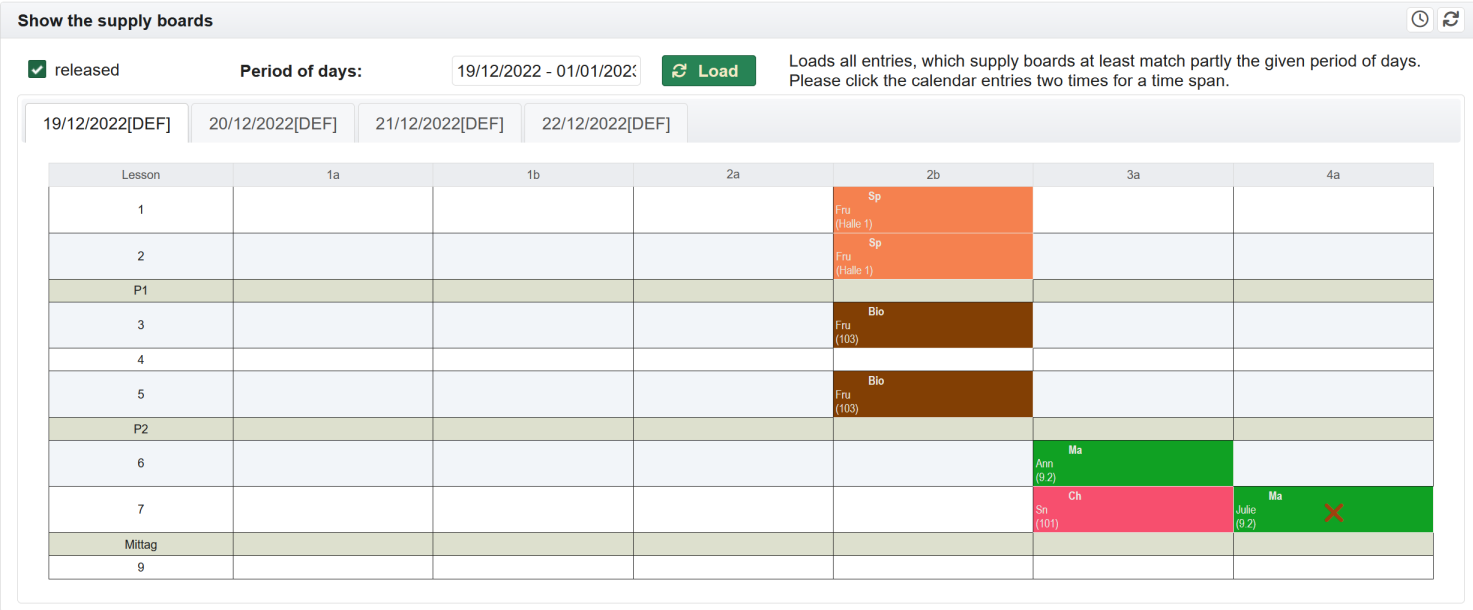 If the substitution plan extends over several days, a separate entry with date is created for each day, which can be selected via the tab.