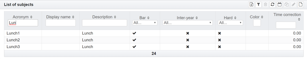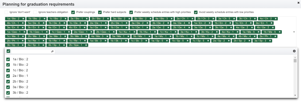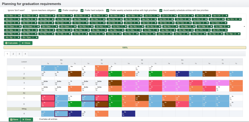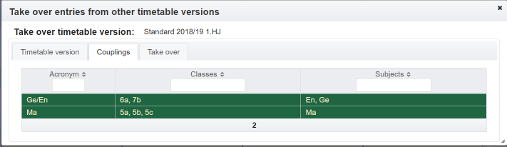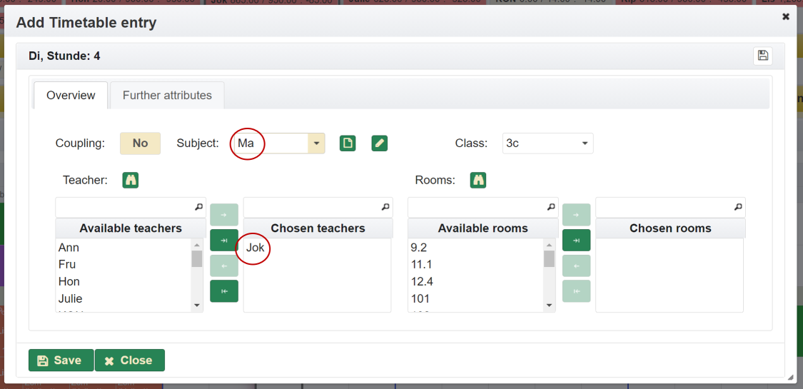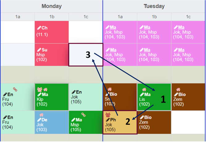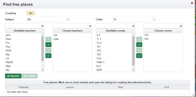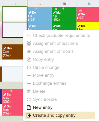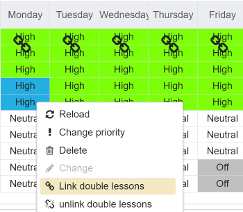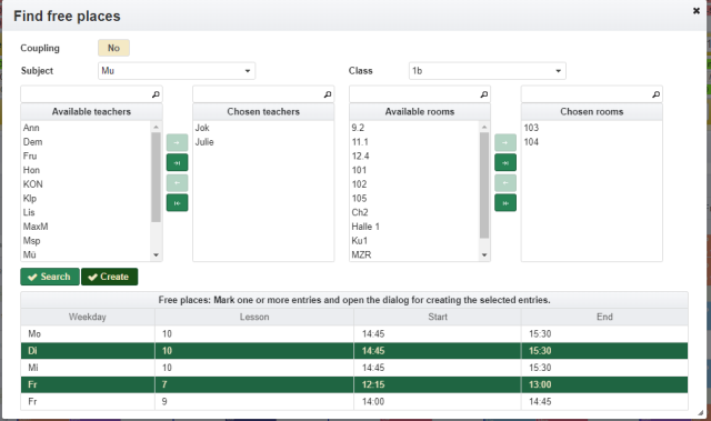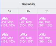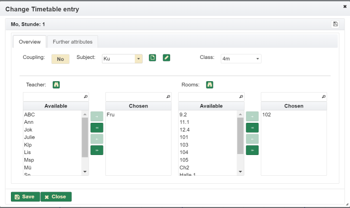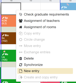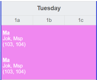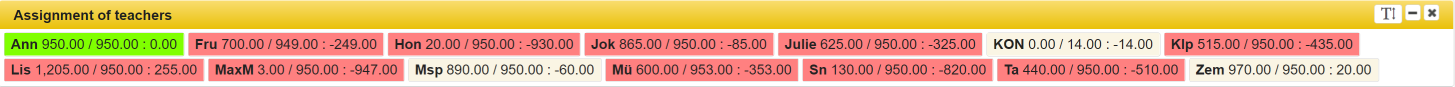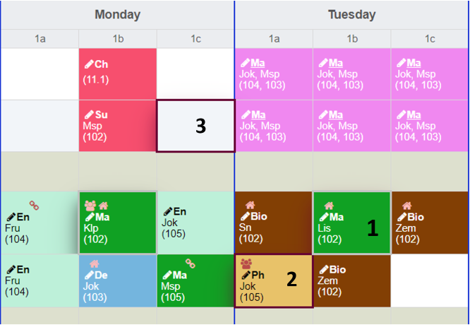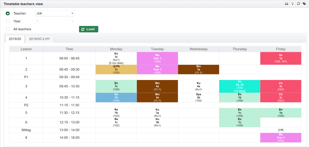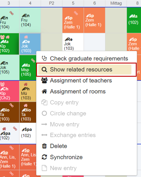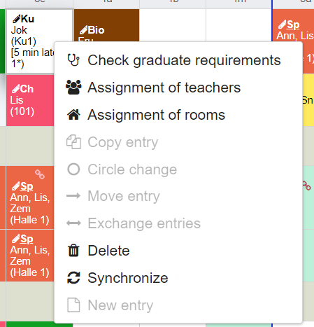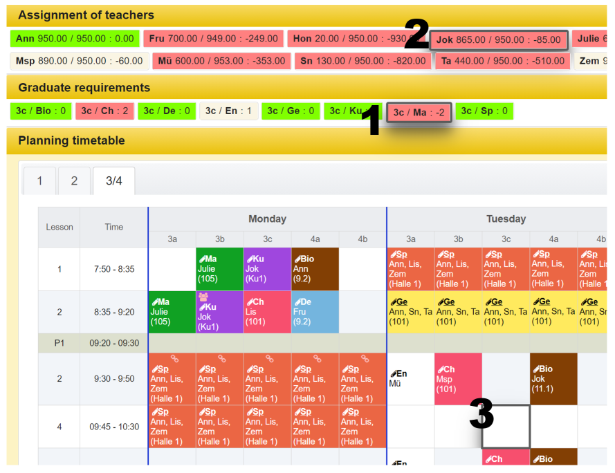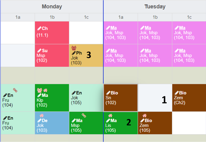 - a teacher is not available. There are more than one teacher assigned. The tooltip contains the list of teachers assigned. Depending on how the settings were made, double allocations are displayed or hidden as long as at least one resource is available.
