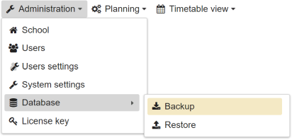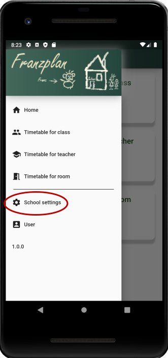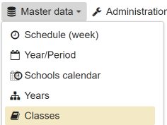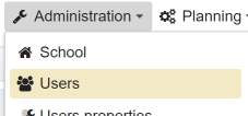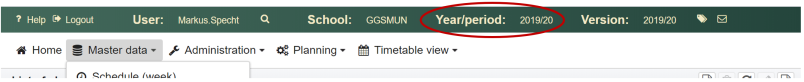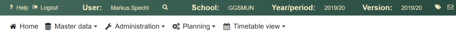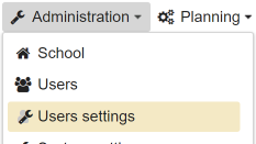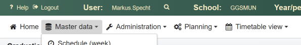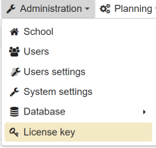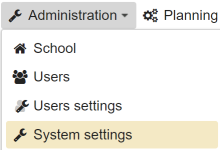 To configure the school server, open the menu in the header and click on the menu item School parameters.