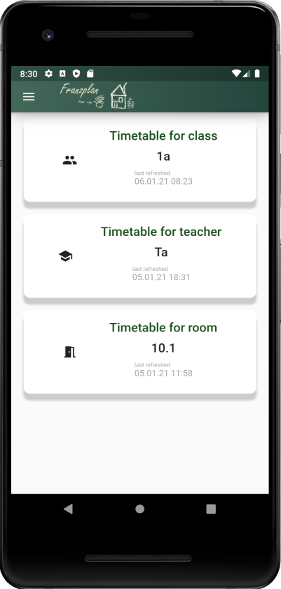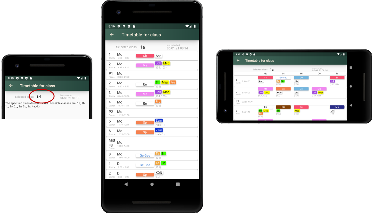 The app is used to view the current, approved timetables for teachers, rooms or classes. However, the planning cannot yet be carried out with it. This feature is in progress.