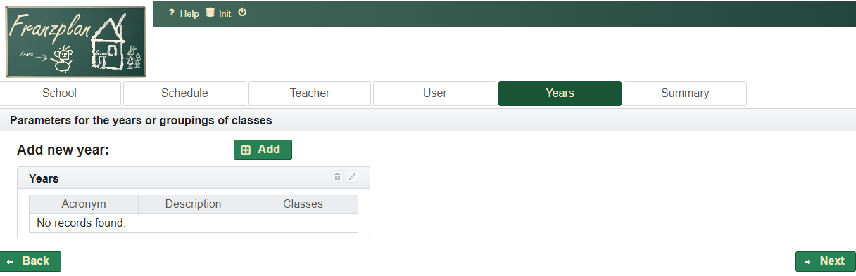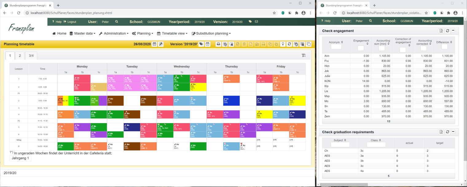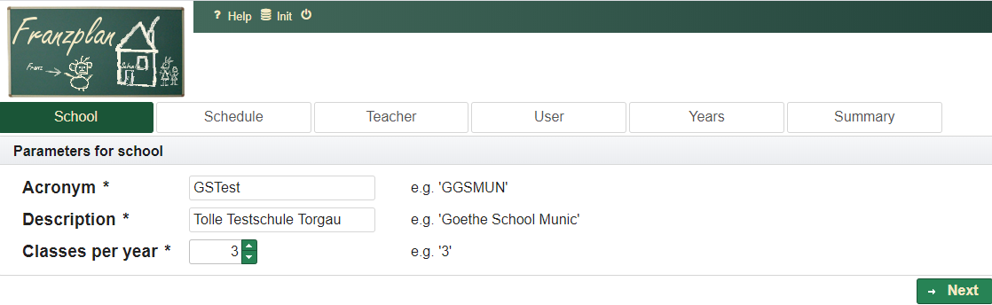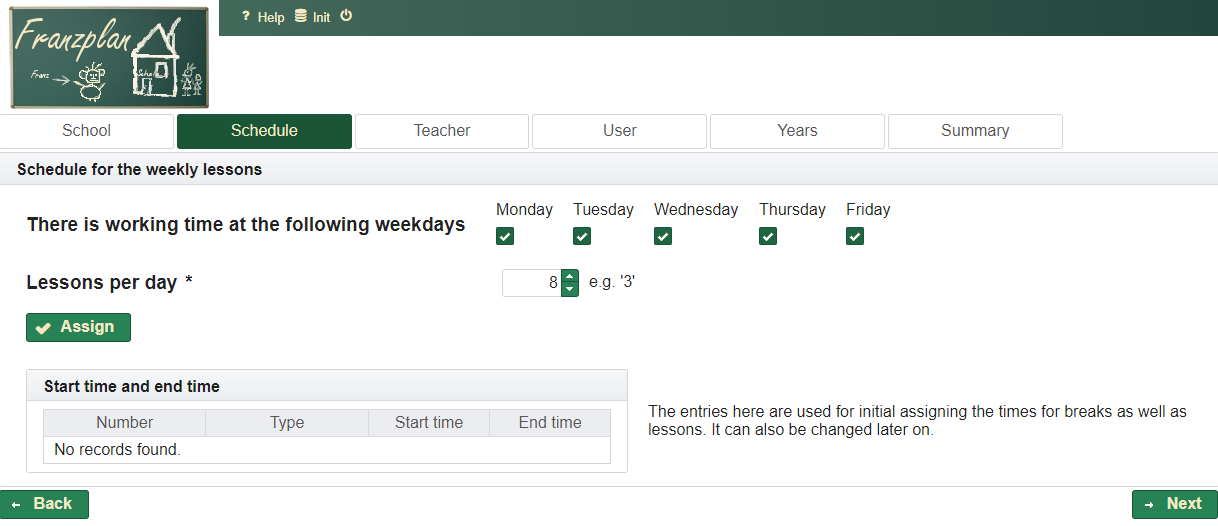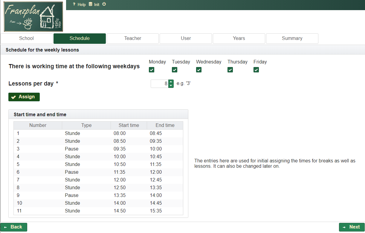 Franzplan is a plain, very tiny solution for creating schedules for school use. The following pages are intended to support new users to become familiar with the application.