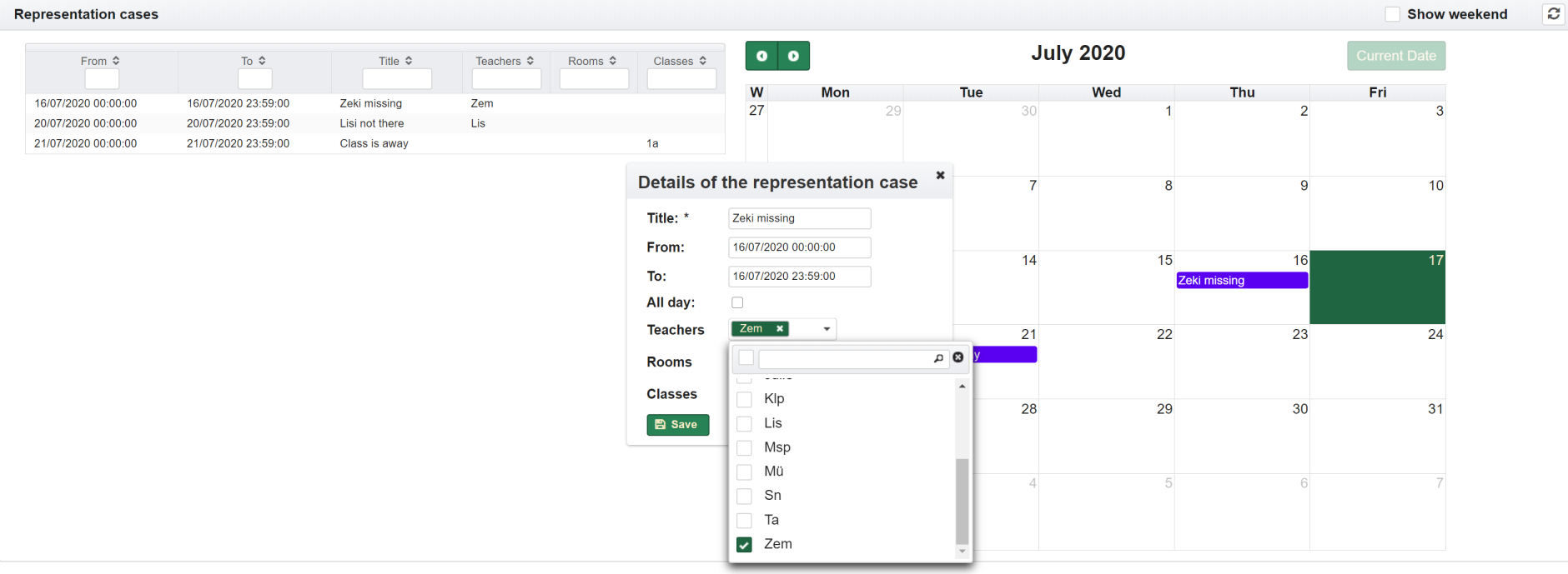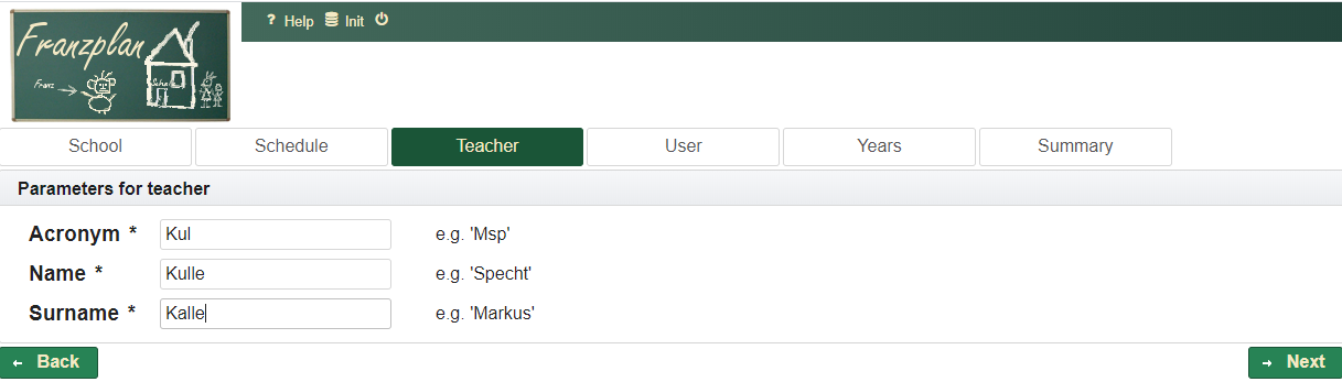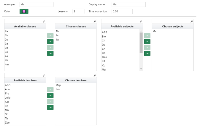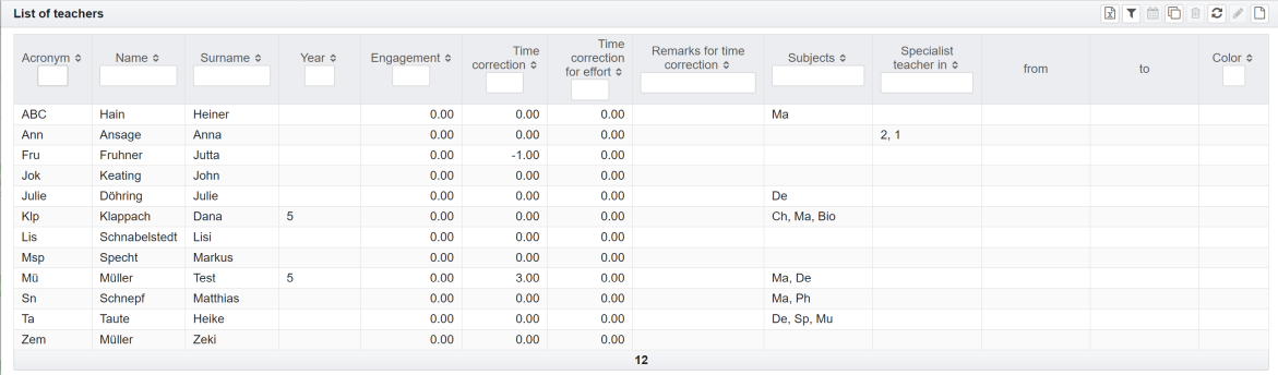 Therefore, a default teacher is then assigned. The abbreviation can be set here. \