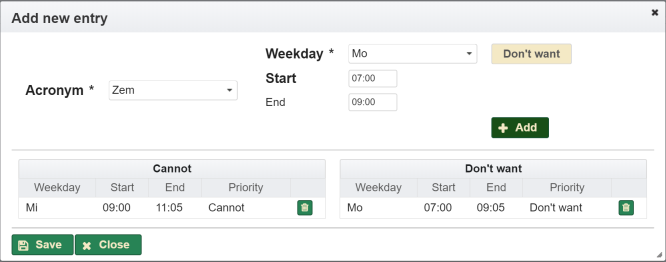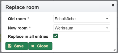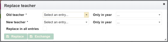 The entries for substitution hours can also be created in the section Substitution hours directly via . A dialog opens for the selection of the schedule entry.