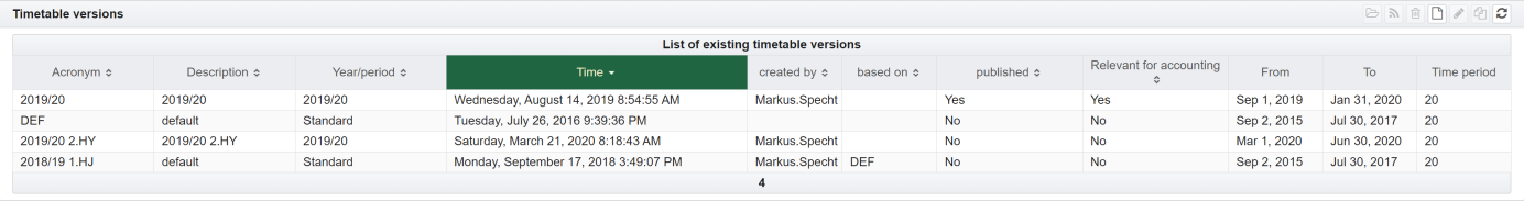 The timetable can be exported from the planning view Timetable planning. A JSON format is created than.